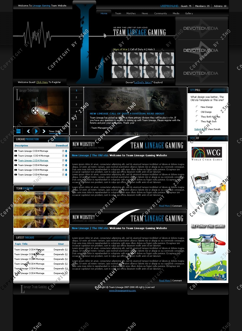 Gaming design which comes with the original PSD file, Flash media player and news reader which has been custom coded and also comes fully coded into xhtml.