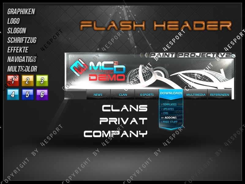 <div lang="en">Create you own style, animation and colors, your own Flashheader in SWF format.</div>